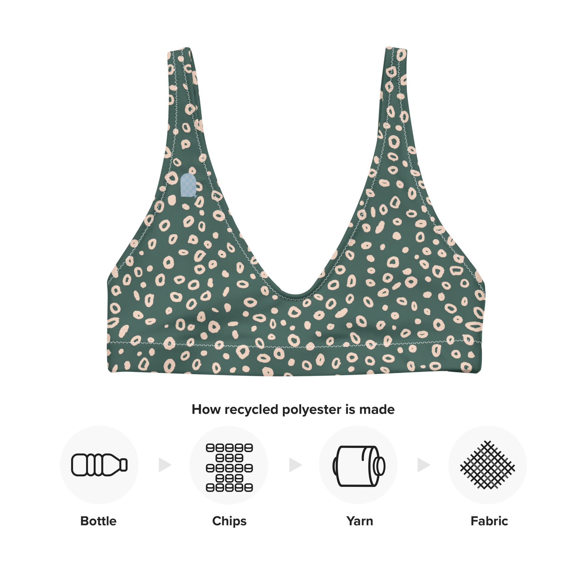 Recycled polyester (rPET for short) is a fabric that’s produced from synthetic fibers. Recycled polyester is produced by recycling existing materials (like plastic bottles and packaging) but still has all the characteristics and performance as a regular polyester, making it a more sustainable fabric alternative.